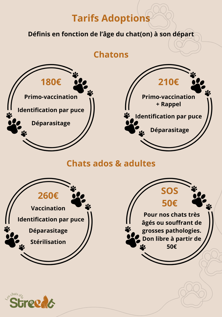 Une participation financière est demandée, elle permet de couvrir en partie les frais liés à la prise en charge du chat.